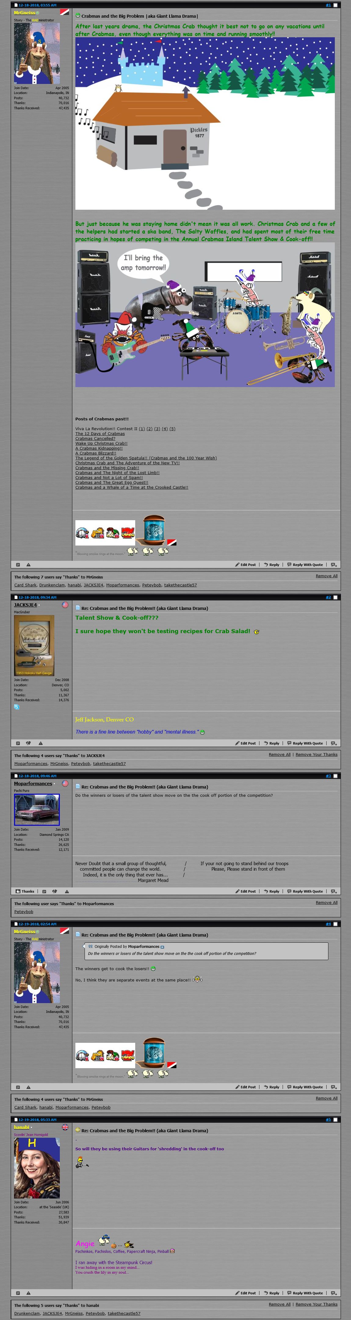 I'm gonna guess this is the year I got my first bass!! :-D And everyone knows crabs love ska, but I have no clue what might have inspired most of this year's story.. Most modern Crabmas stories just start with one thing, like a bass, then the rest just leaks out of my brain, slowly, then all at once!! :-D