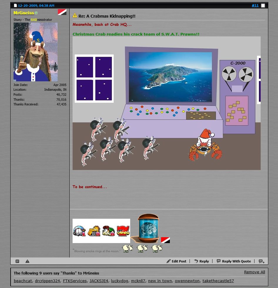 Another huge change was the mass exodus from forums to Facebook for hanging out online, so interactions with the story from readers were greatly reduced, which did make it easier to make the stories ahead of time since changes didn’t have to be made to go along with the posts, but the frantic fun of the unknown was lost. But hopefully I’ve been able to keep the crabby fun alive!! :-D